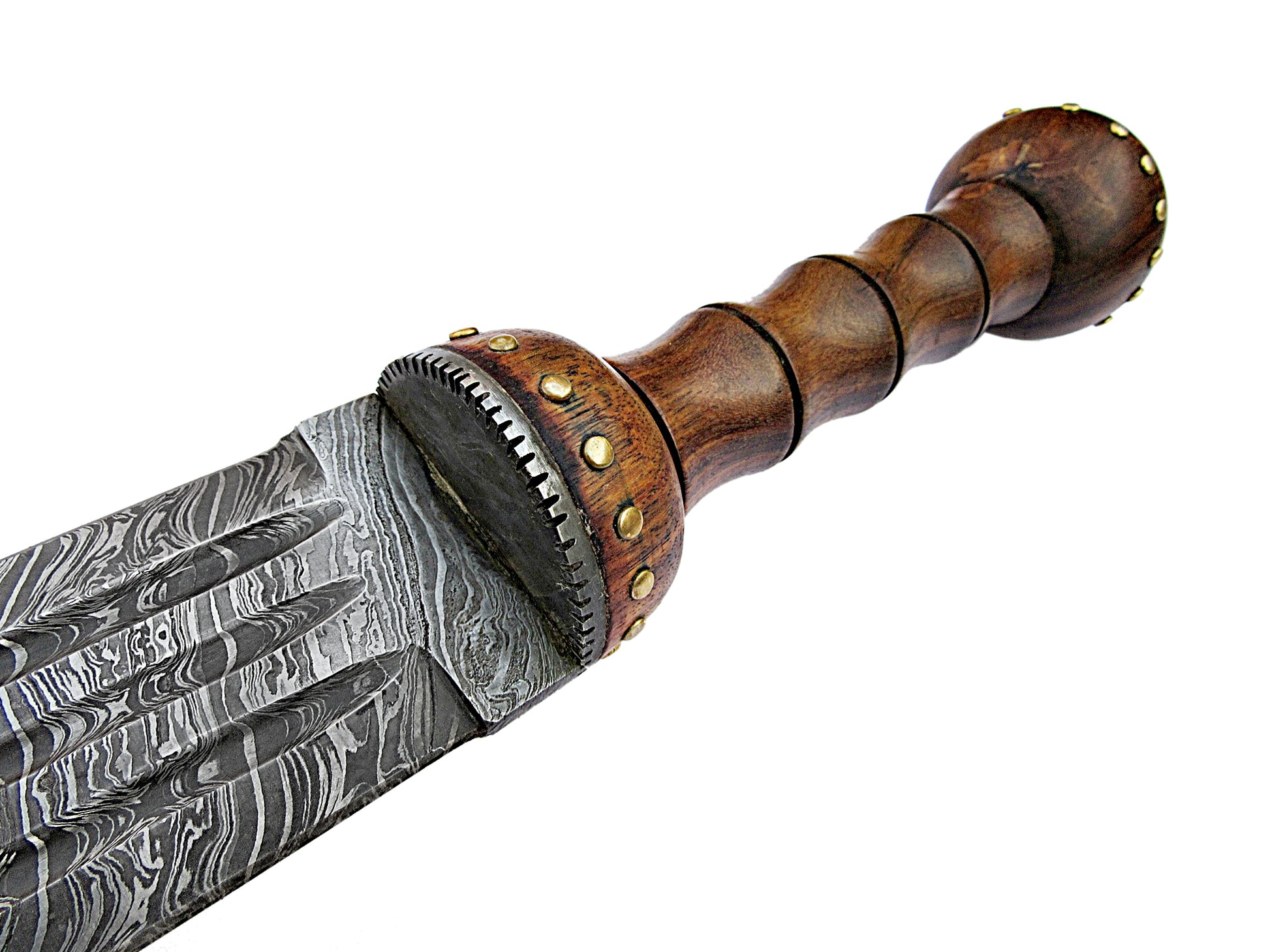 Custom Handmade Damascus Steel Sword with Rosewood Handle and Leather Sheath, Ideal for Giving as a Present!